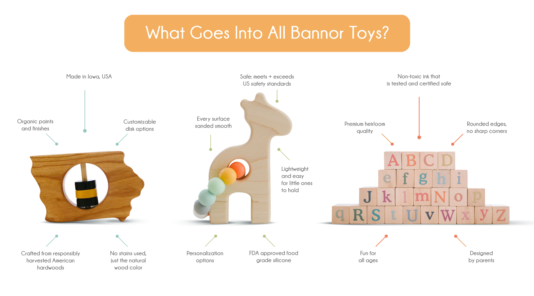 Care, love, and a whole lot of safety goes into making each and every Bannor Toy! From the materials we use to the processes in creating each toy, we have your kids in mind when building toys.