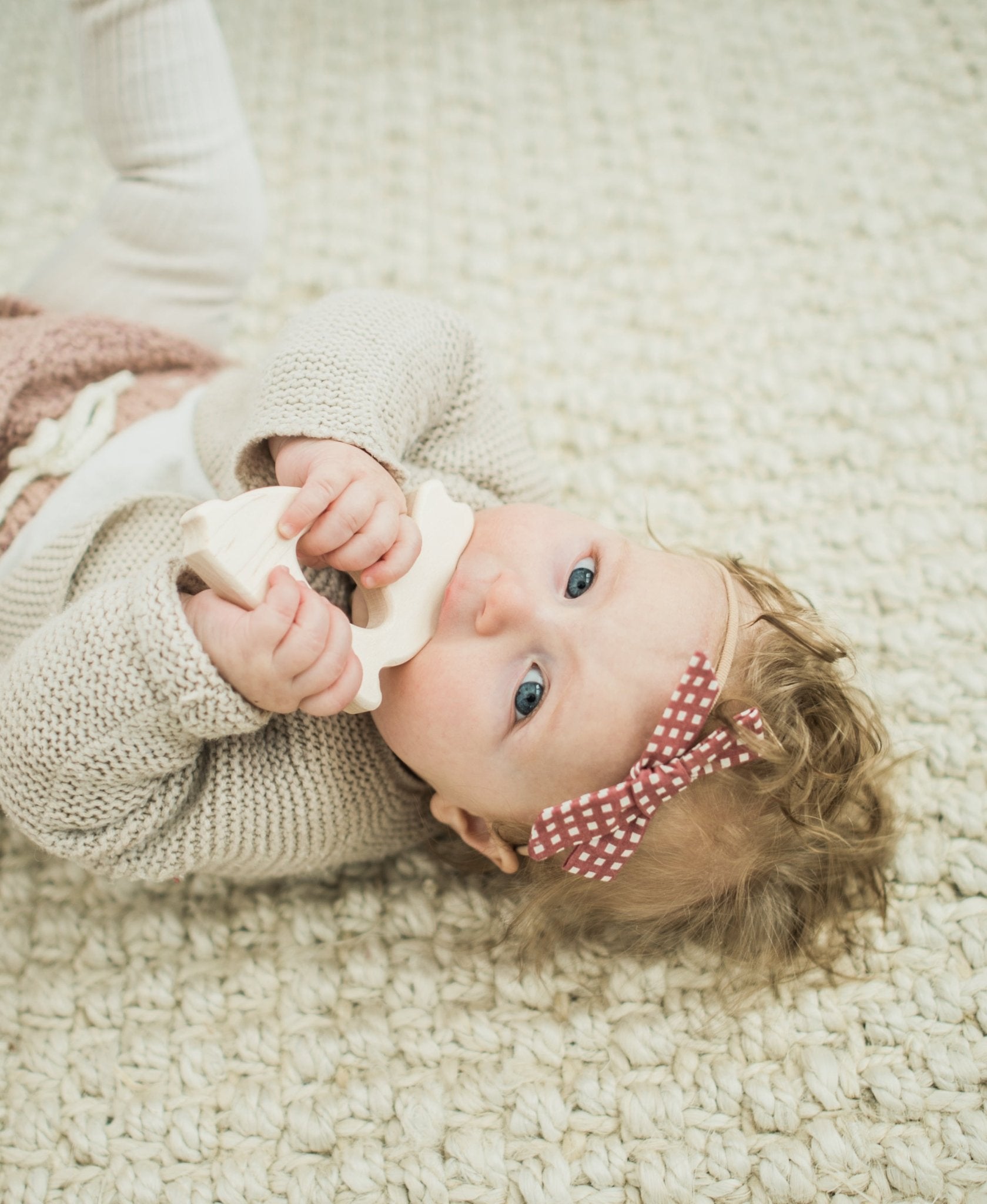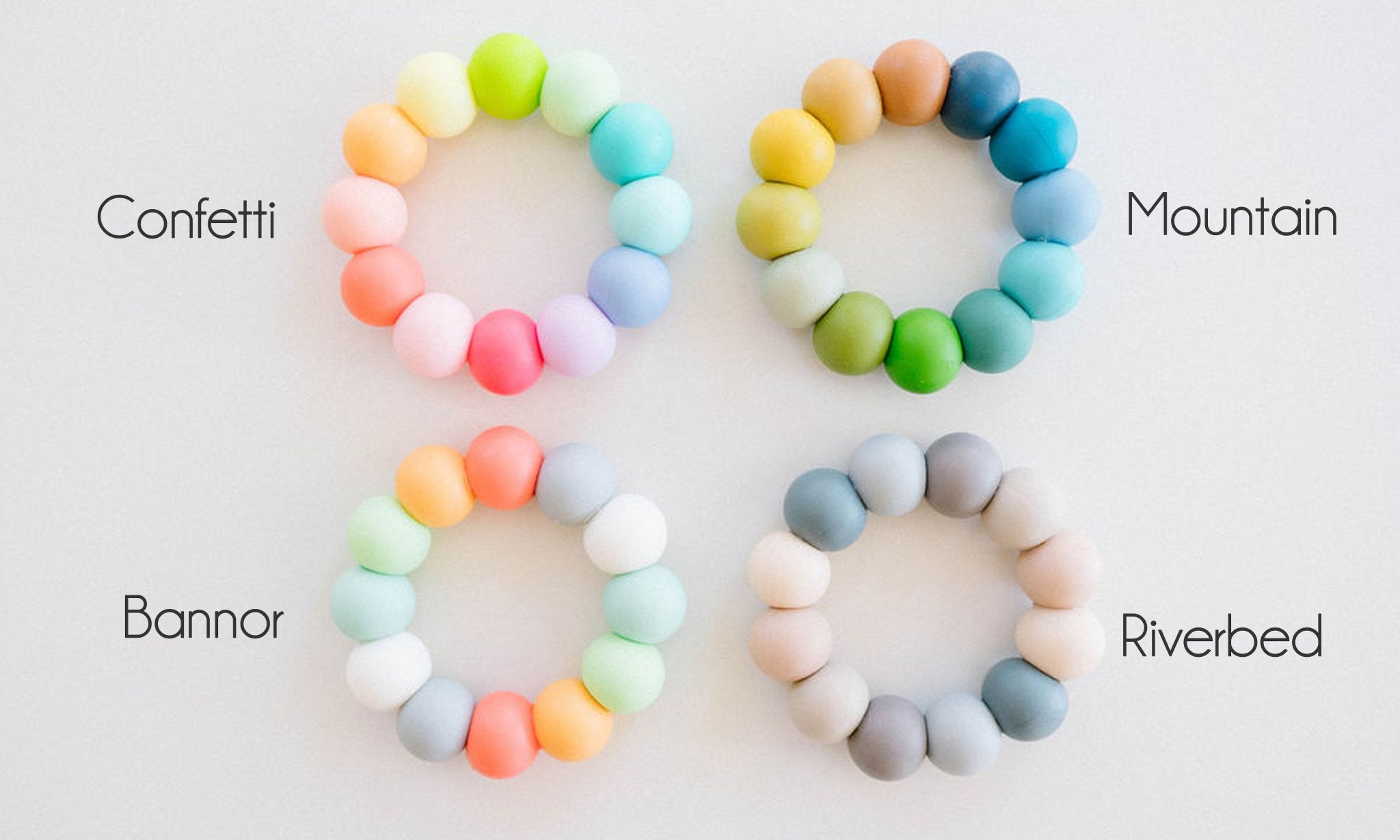 This sweet bunny is sure to bounce right in and make learning to grasp easier for your little one!  Made from rock hard maple wood, it is naturally anti-bacterial and non-splintering.  It has a built in grasping spot, with the added teething silicone ring you can toss it in the freezer for a couple hours as silicone will hold the cold to make it more relieving!  Just tell us what color of beads to put on your bunny.