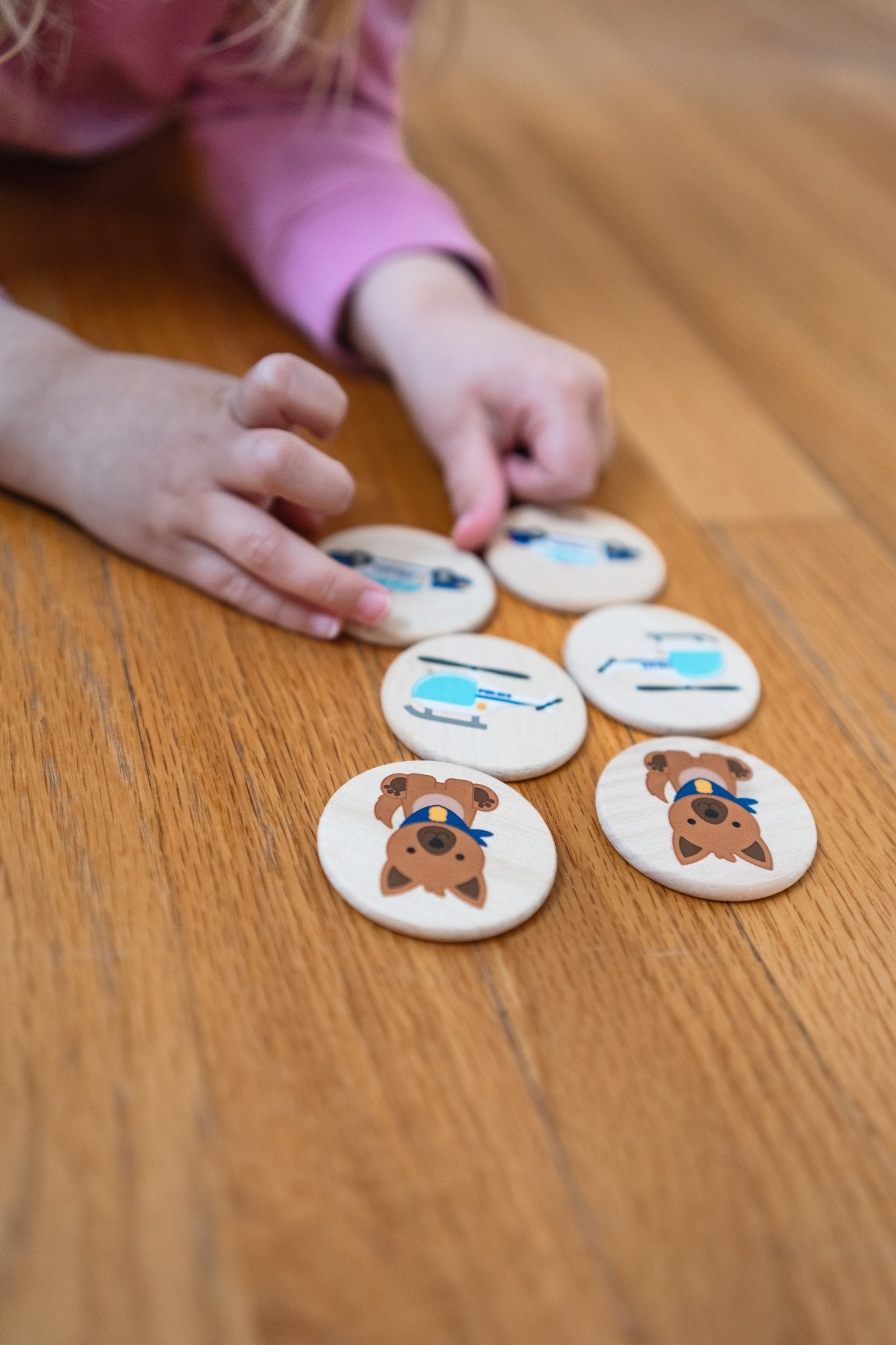 They come to our rescue when we are hurt or in trouble so let's celebrate them with a matching game!  This memory matching set consists of 12 designs featuring the heroes in our lives, First Responders, on 24 wooden tiles. It can be enjoyed solo or with the entire family - teaching kids to take turns and share with others.  Our wooden matching tiles will also promote short term memory skills.