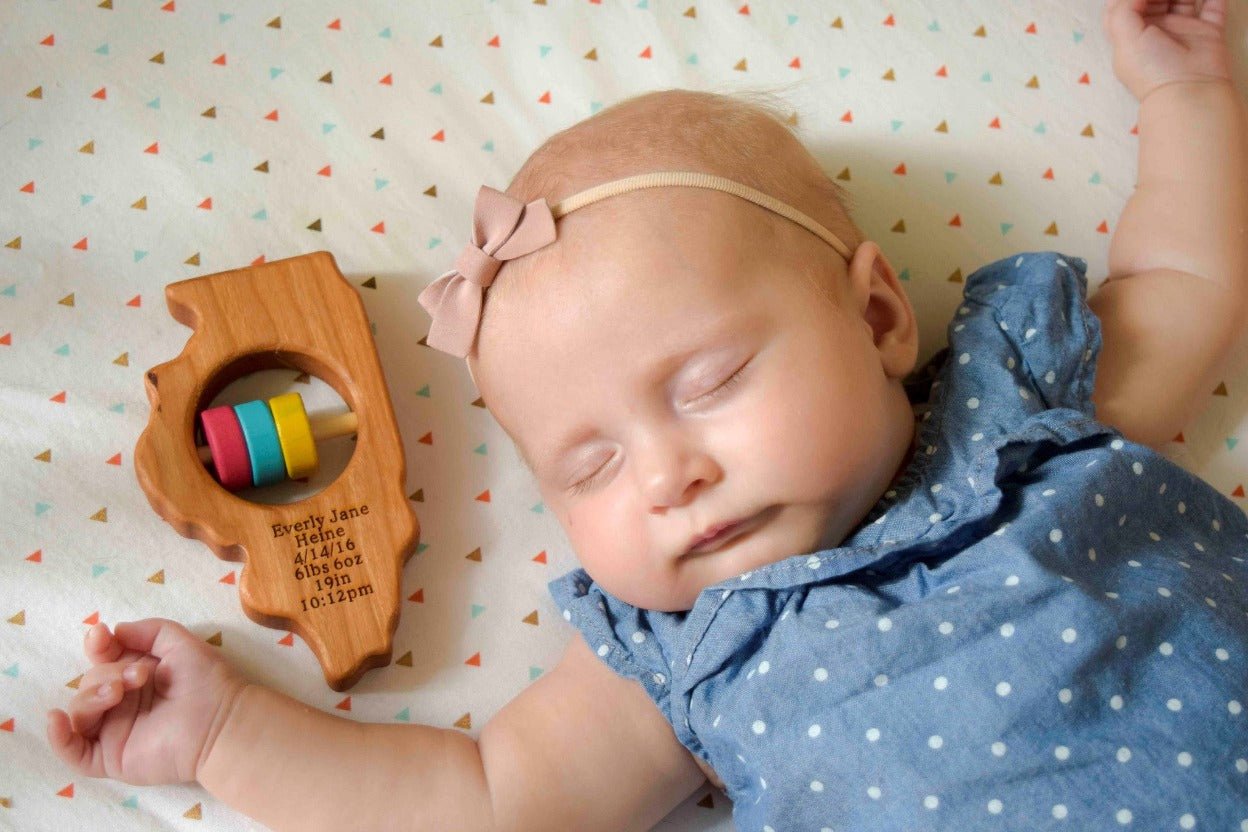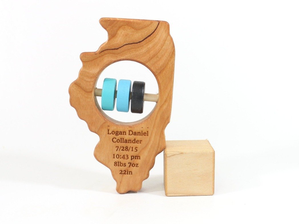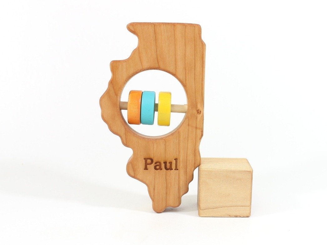 Illinois State Wooden Baby Rattle™ - Bannor Toys - State Rattle