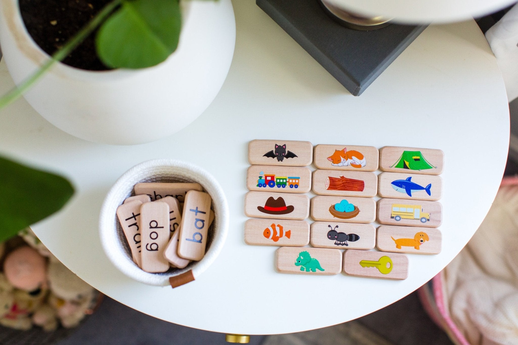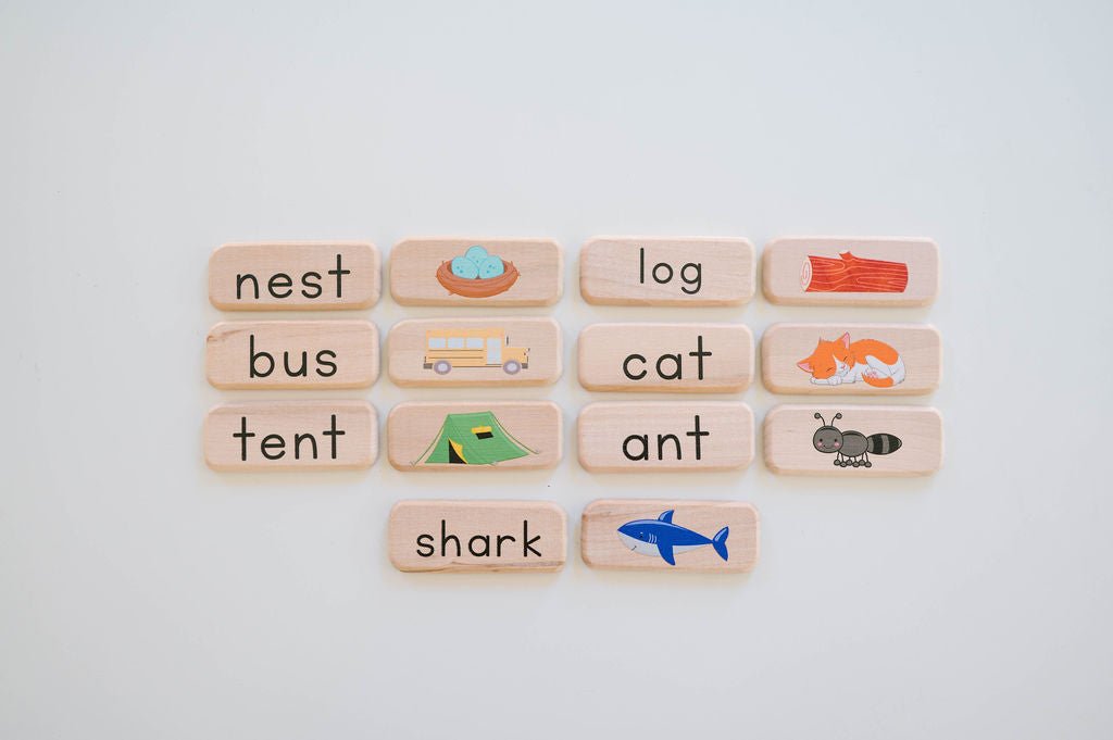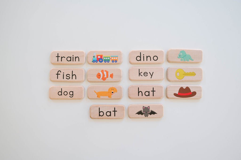 Help your little learn to read words! Memory matching tiles are a timeless classic that never goes out of fashion! They can be enjoyed solo or with the entire family - teaching kids to take turns and share with others.  Our wooden matching tiles will also promote short term memory skills.