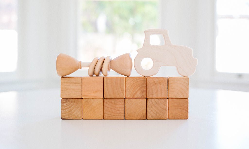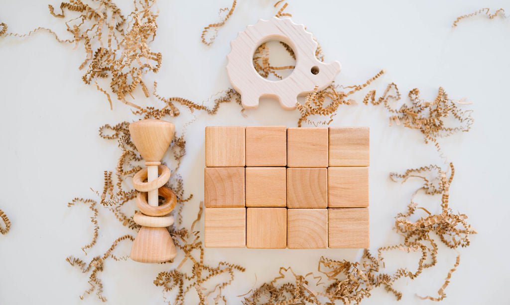 All of our wooden toys are 100% made here in the United States. Our workshop is in our hometown of Madrid, Iowa. All of our lumber is sourced from Iowa and the Midwest. The few parts that we do not make ourselves such as wood rings are made by companies in Texas, Illinois, Ohio, and Maine.