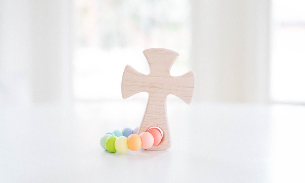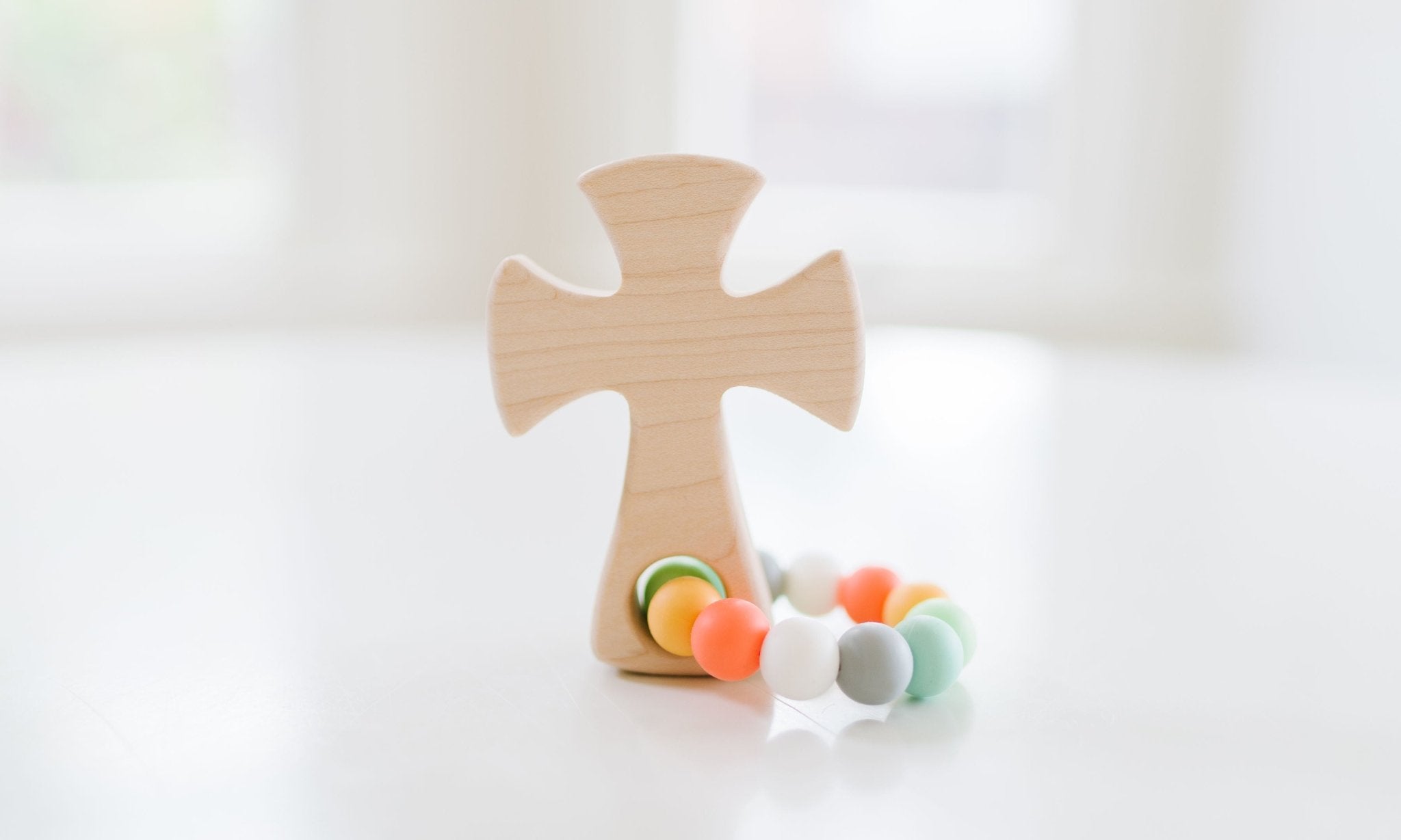 Cross Wood Grasping Toy With Teething Beads - Bannor Toys
