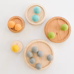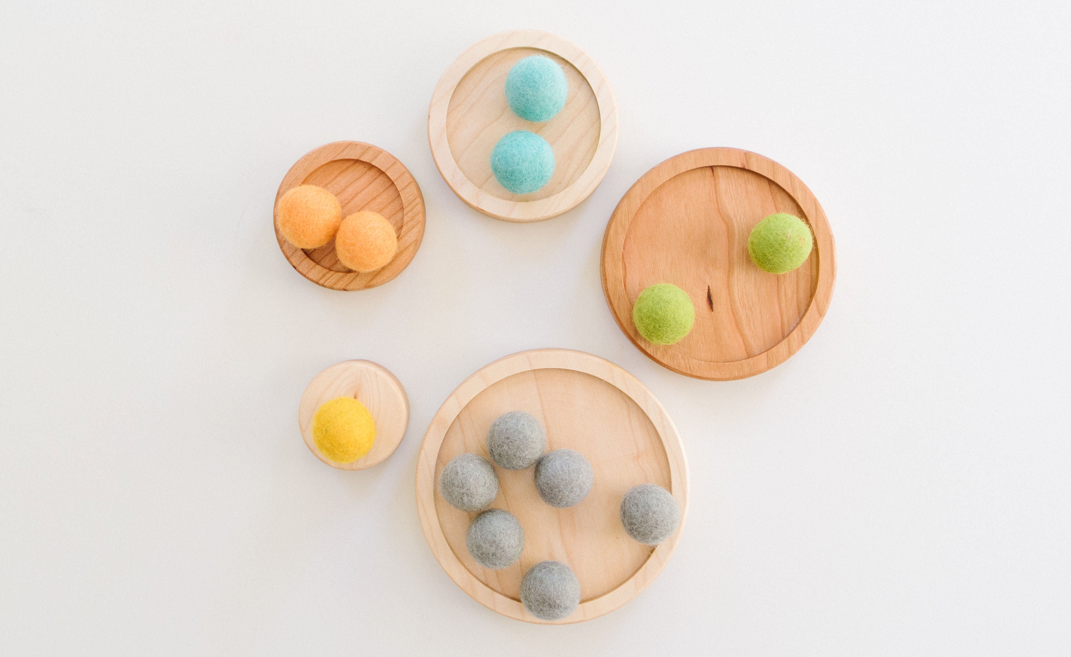 Our tiered sorting stacker doubles as a stacking toy and sorting trays! Handmade in Madrid, IA, it features a Maple base with 4 maple and cherry circle to stack on top. Perfect small size for little ones, light weight and easy to play with. Fun for toddlers, this toy helps to develop imagination and problem solving. Crafted from locally sourced Maple and Cherry wood, it is finished with a mix of beeswax and flaxseed oil. *felt balls not included