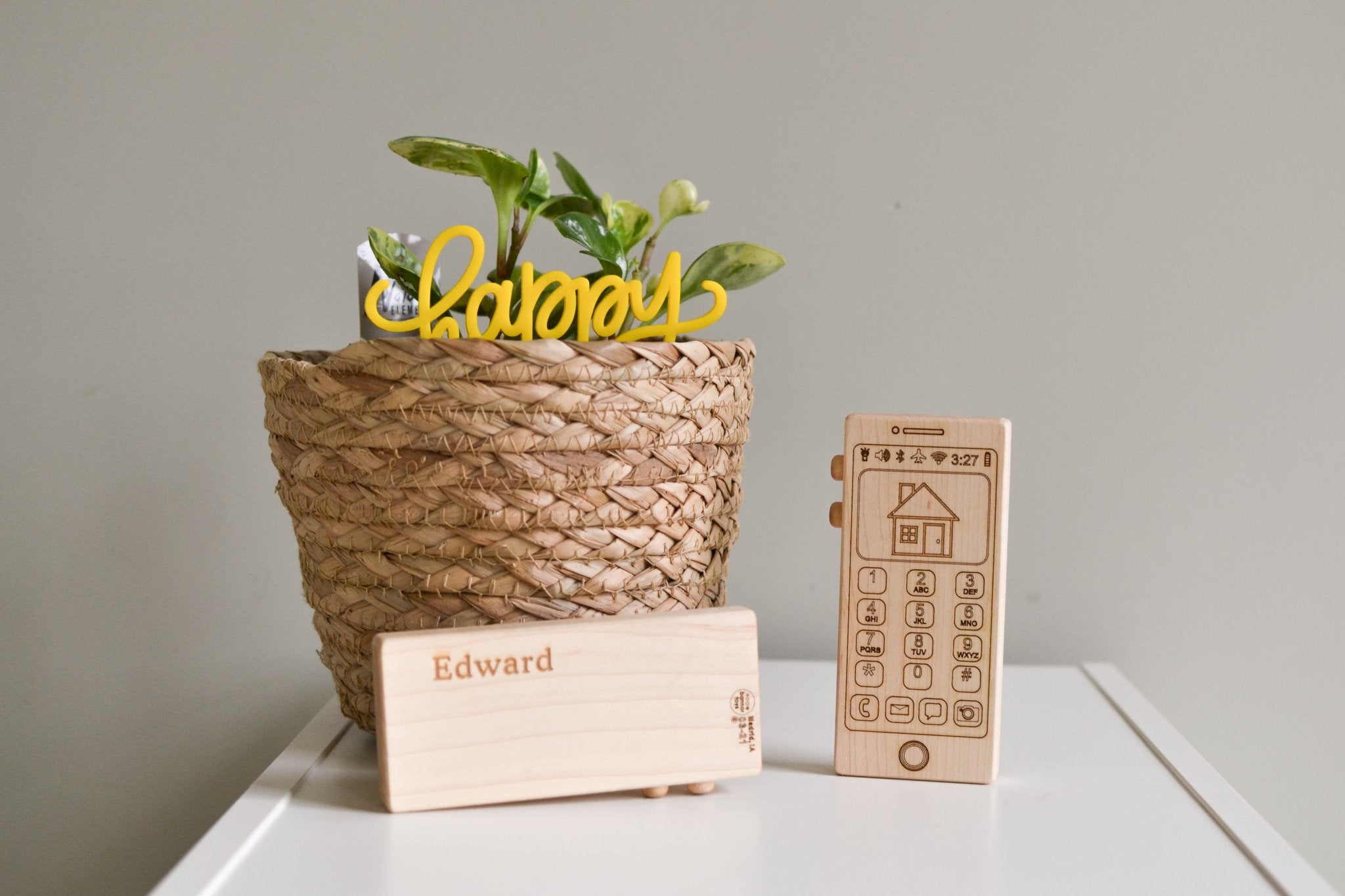 -Leave the toy plain or have it permanently laser engraved with a single word (+$6). If personalization is selected please tell us what single word to inscribe in the notes box at checkout.  If you would like to put two words on the phone (ex. Amy Jo or MaryAnn) you will need to purchase the 2 word option.